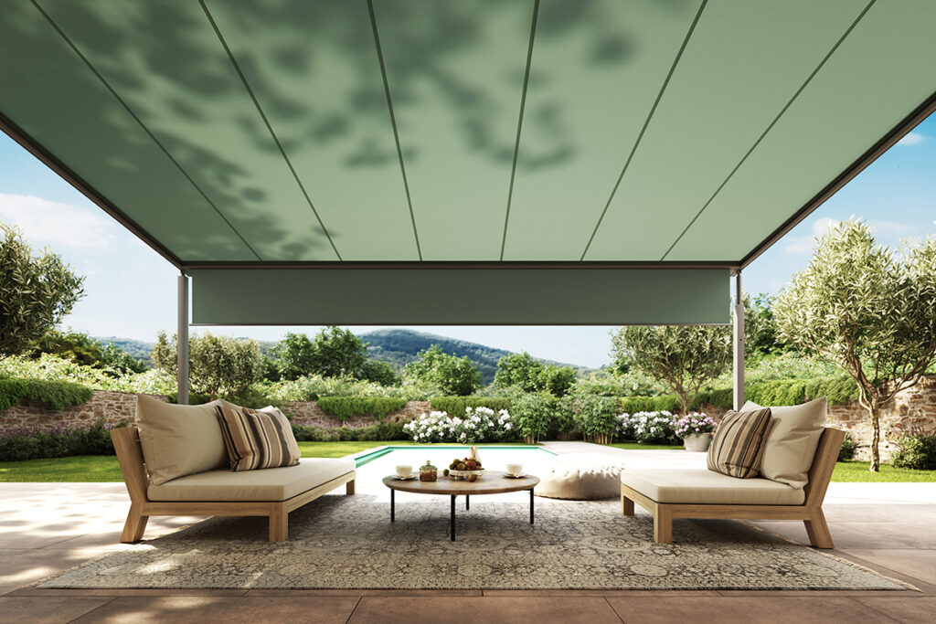 Ce modèle s’intègre harmonieusement à l’architecture moderne et offre de nombreuses options pour personnaliser le store en fonction de vos préférences. Rails latéraux, pieds carrés, poteaux réglables pour l’évacuation de l’eau, chauffage radiant, éclairage LED, caissons lestés, écran vertical supplémentaire, etc.